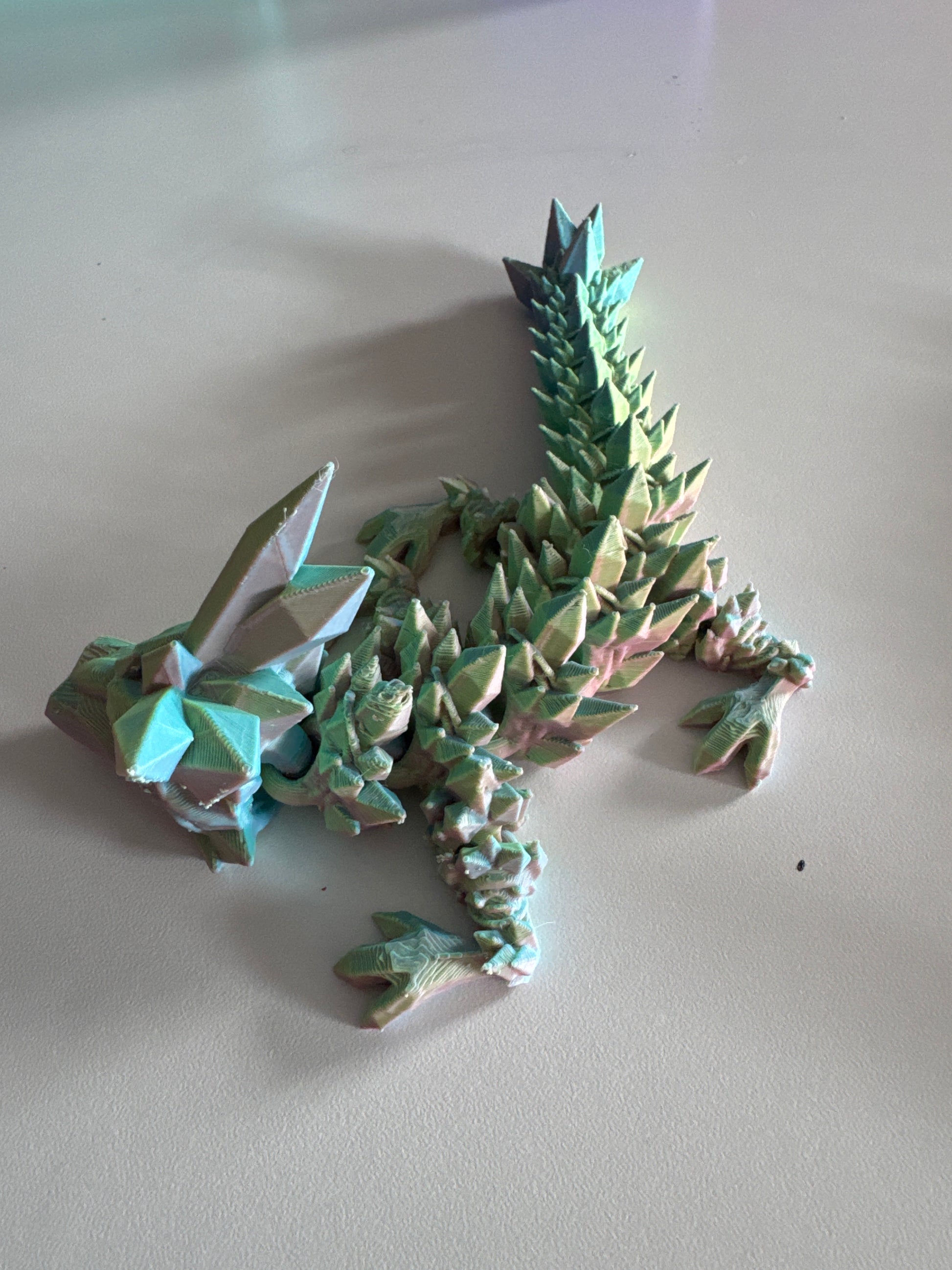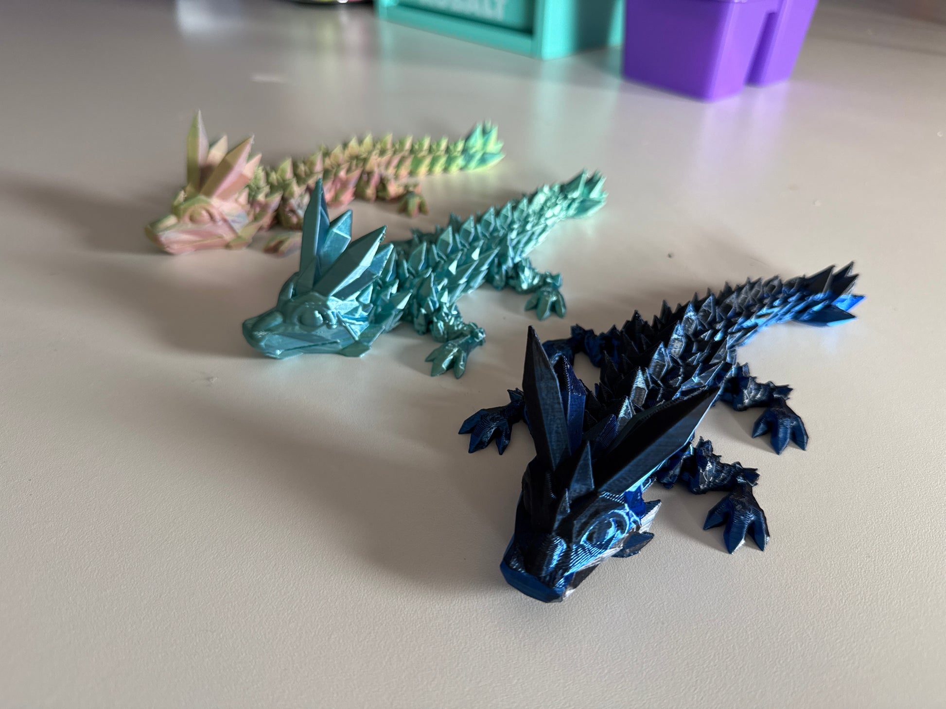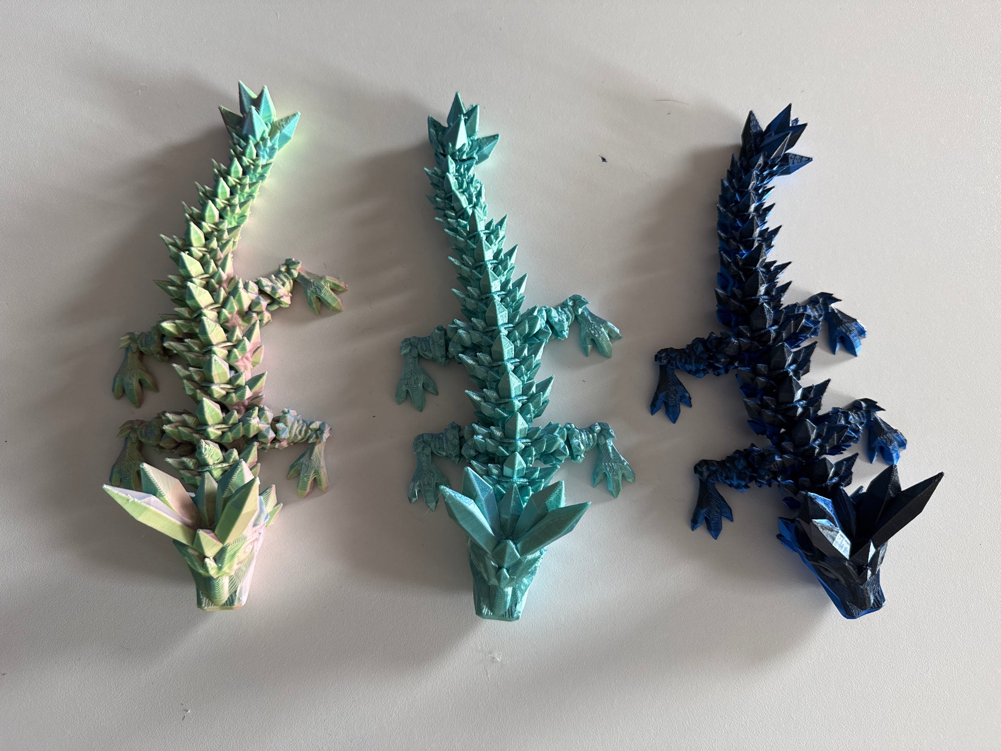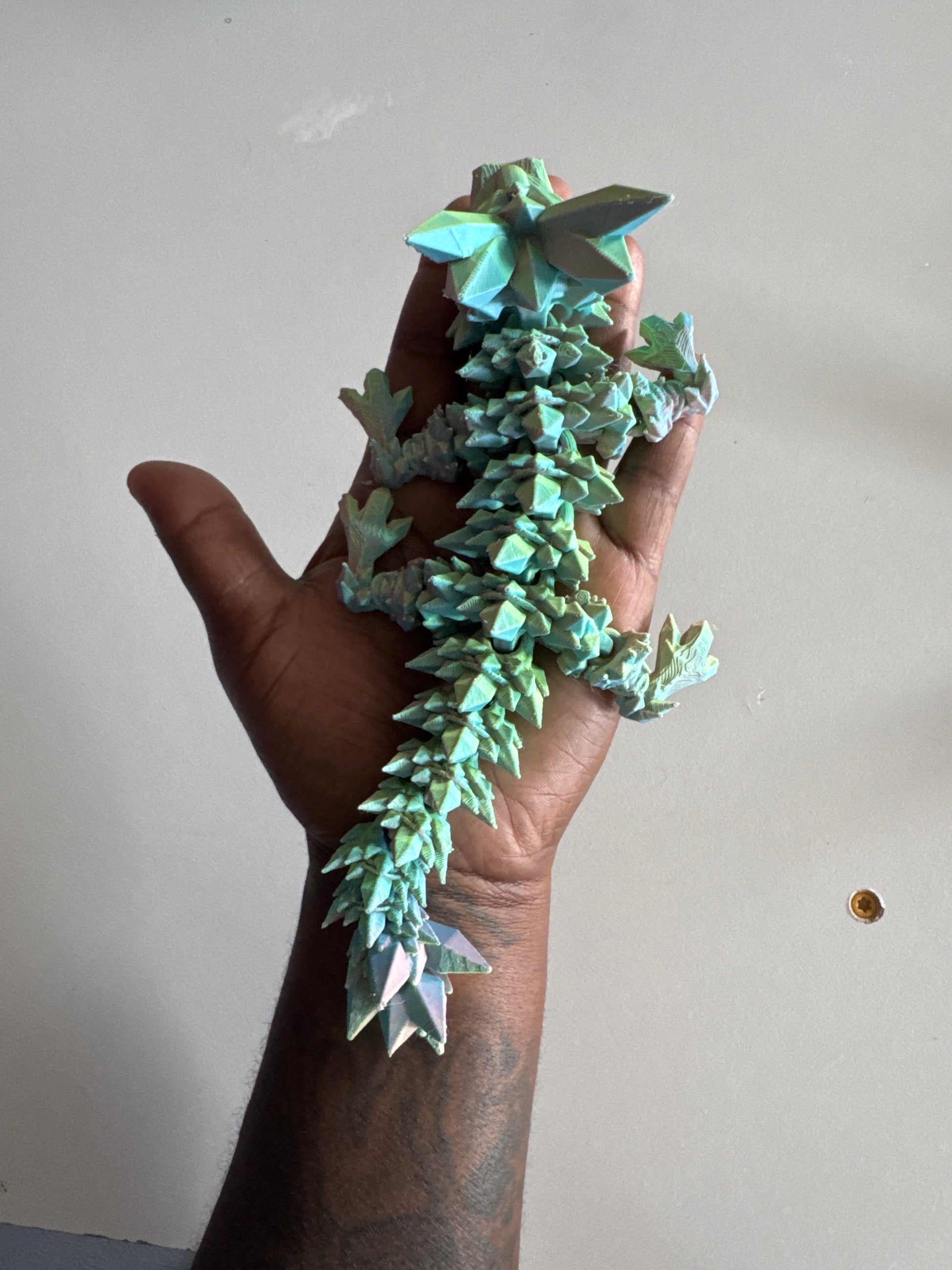 The 10-inch cinderwing dragon design features 3-D printed sharp nodules resembling crystals, creating an impressive and unique articulating effect.