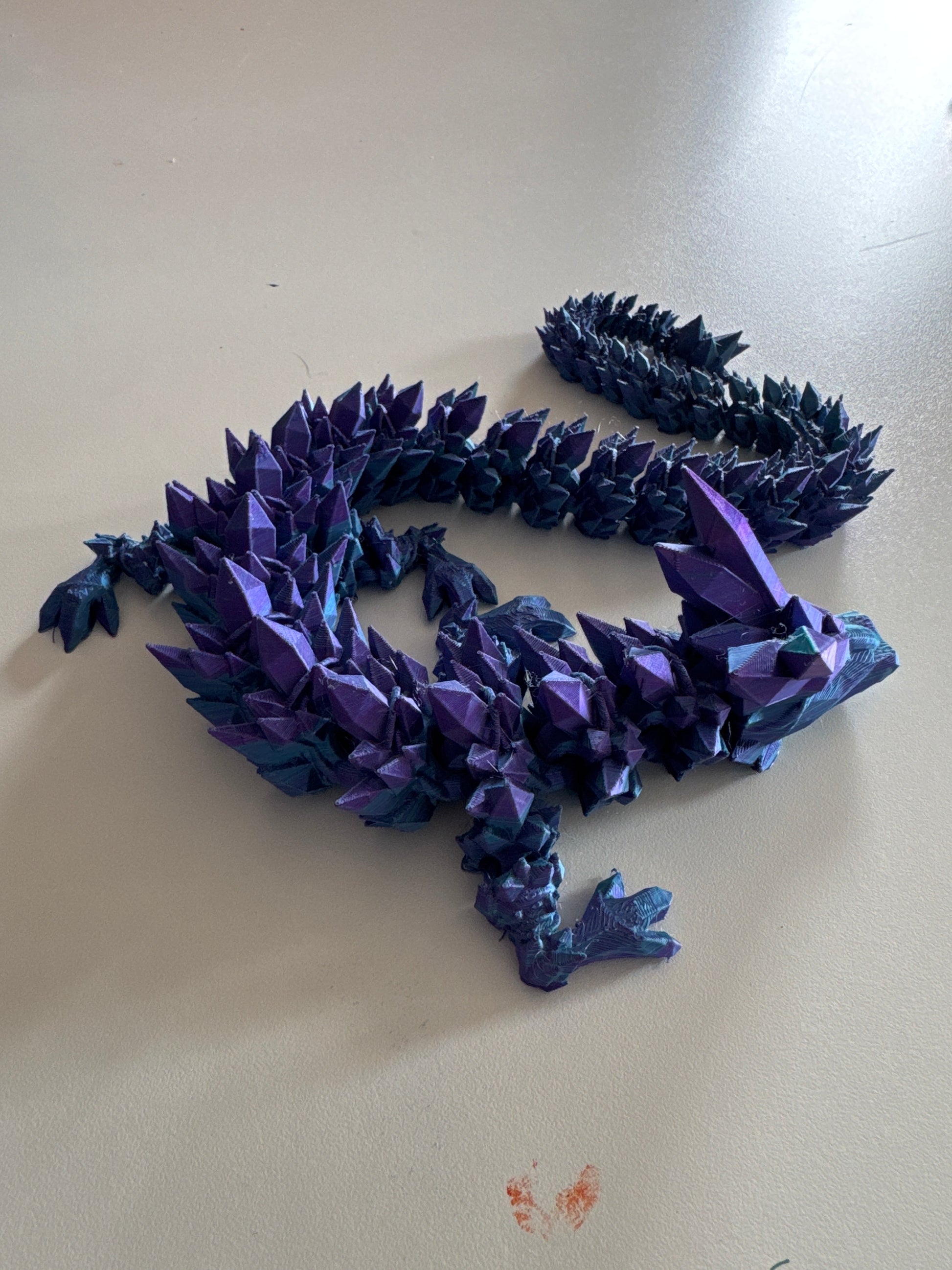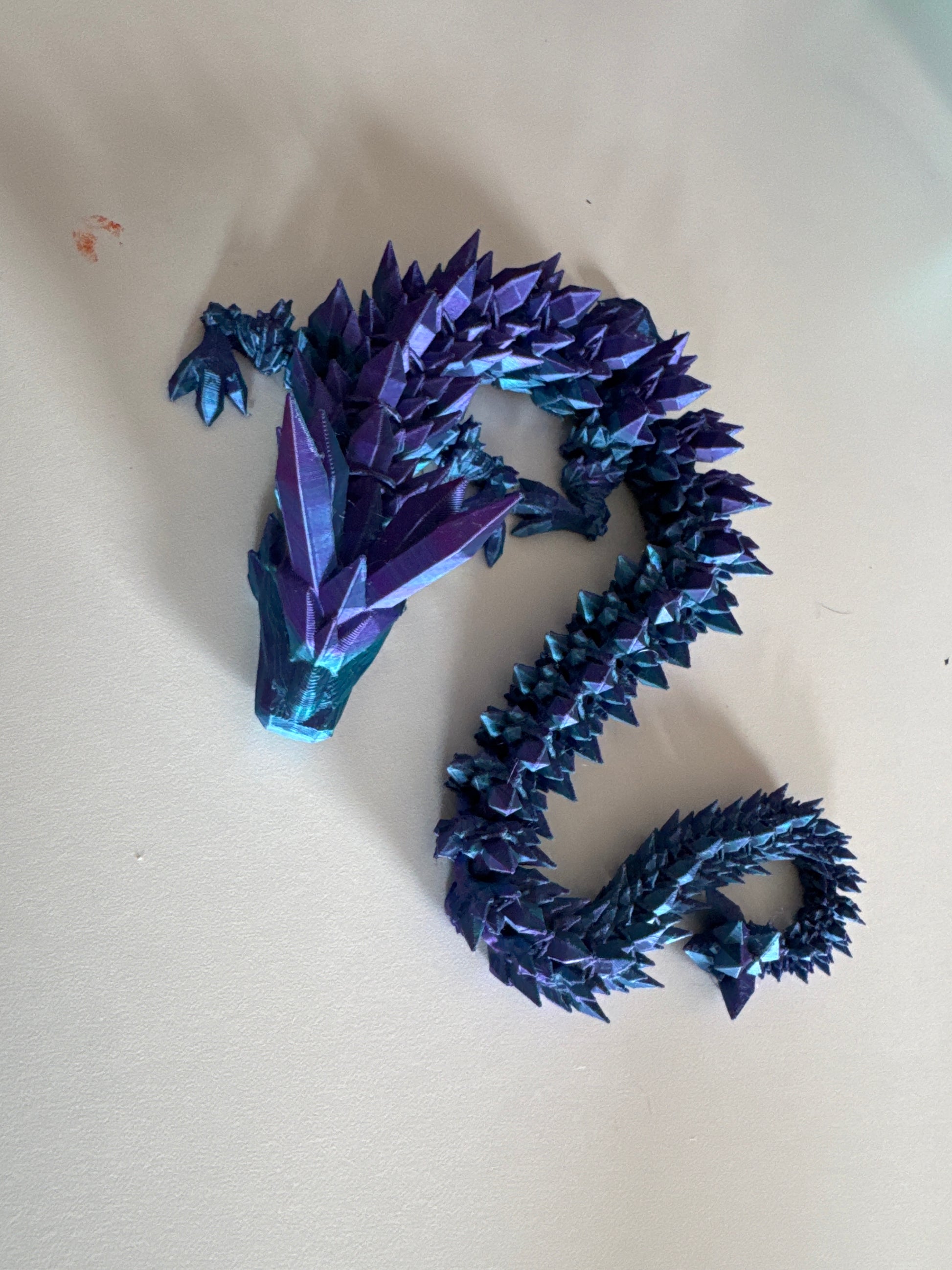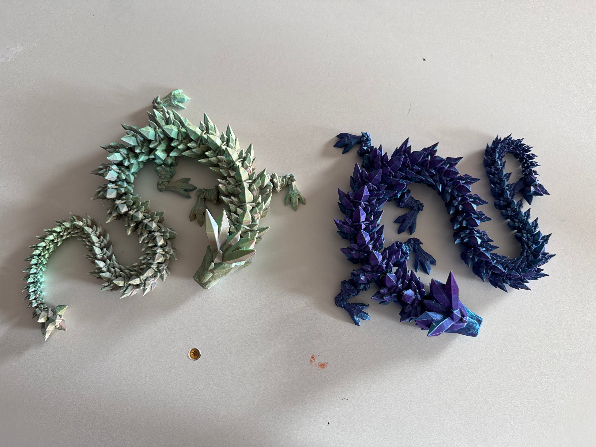 This 3D-printed dragon has a unique design, featuring rose petals along its spine that are able to articulate.