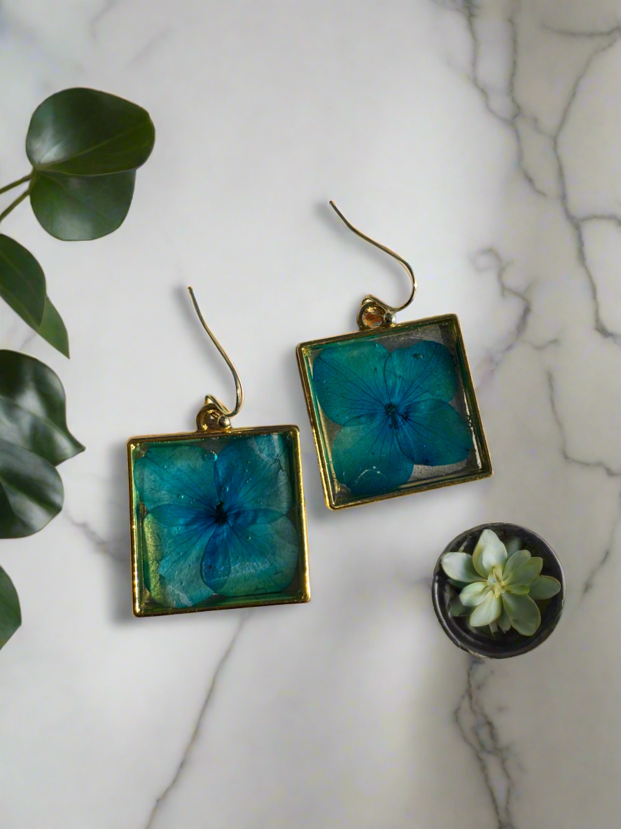 Add a touch of nature and elegance to your look with our Gold Square Resin Dangles. Made with real pressed flowers and high-quality resin, these earrings are lightweight and versatile, perfect for any occasion. Elevate your style and make a statement with these unique and beautiful dangles.