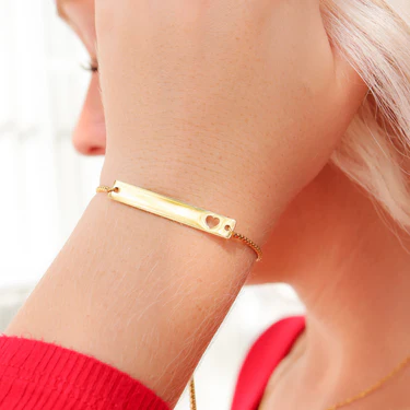 Fall in love with our Flat Adjustable Bar with Heart Bracelet! This stunning accessory features a delicate cut out heart design and can be easily adjusted for the perfect fit. Add a touch of romance to any outfit with this unique and versatile bracelet.