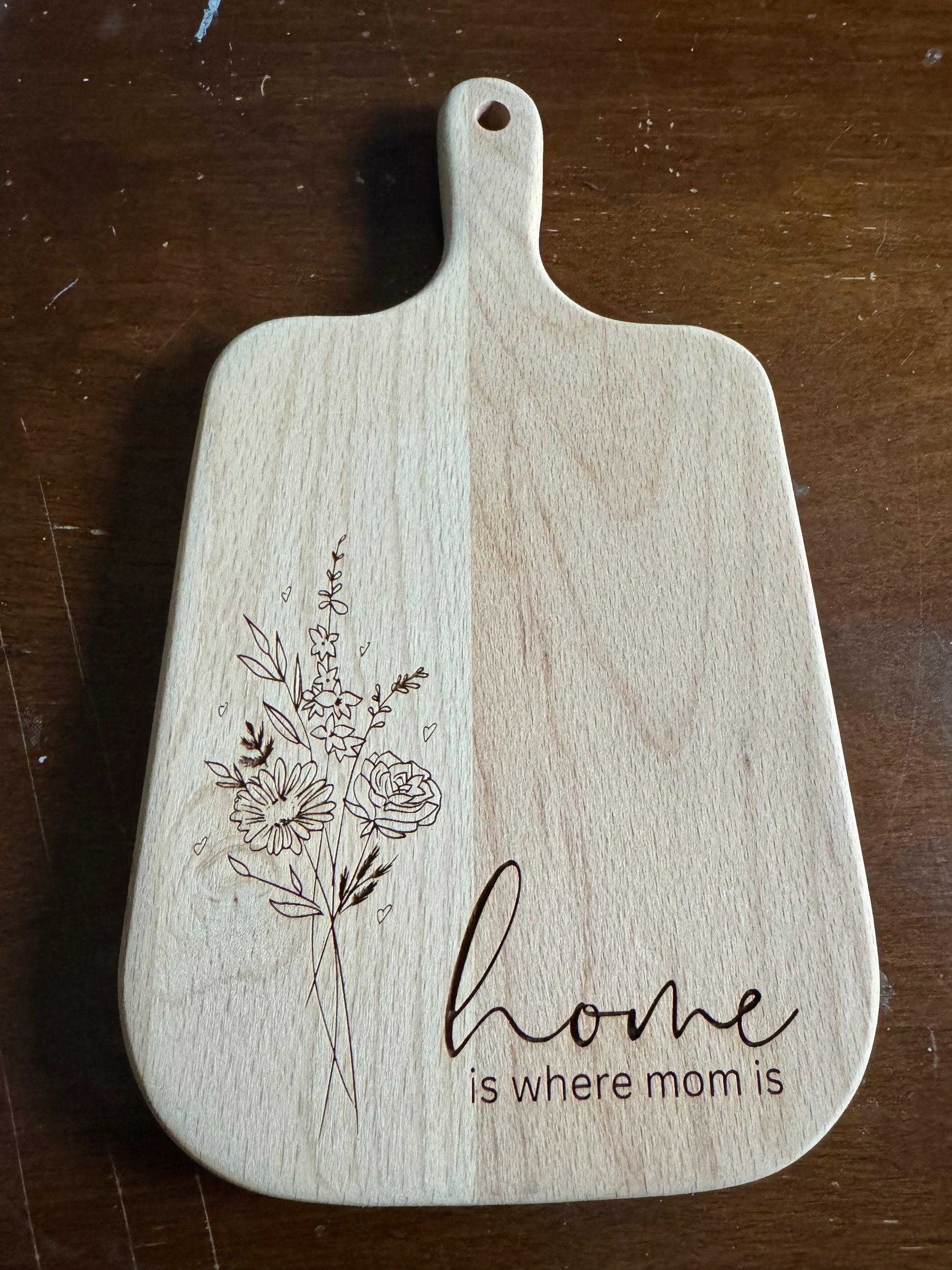 Crafted from high-quality acacia wood, these cutting boards are perfect for any kitchen. With laser engraved designs, they make a thoughtful and beautiful gift for Mom. Show her how much she's loved every time she prepares a meal. Durable and functional, these cutting boards are a must-have for any cooking enthusiast.