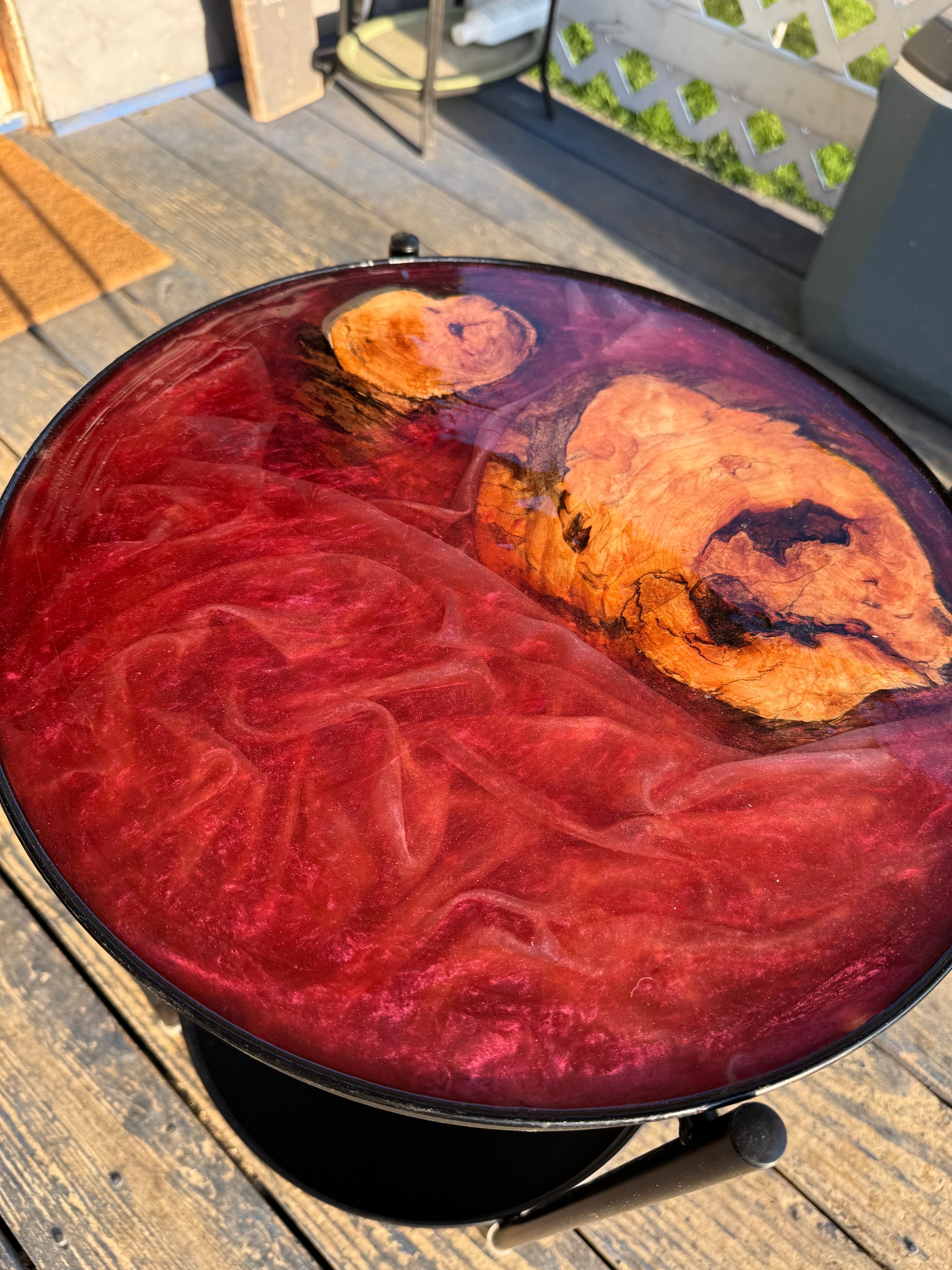 Introducing the Ruby Resin Endtable - the perfect accent piece for any room. Handcrafted with unique, one of a kind epoxy, this endtable will add a pop of color and texture to your space. Elevate your home decor with this stunning and versatile piece.