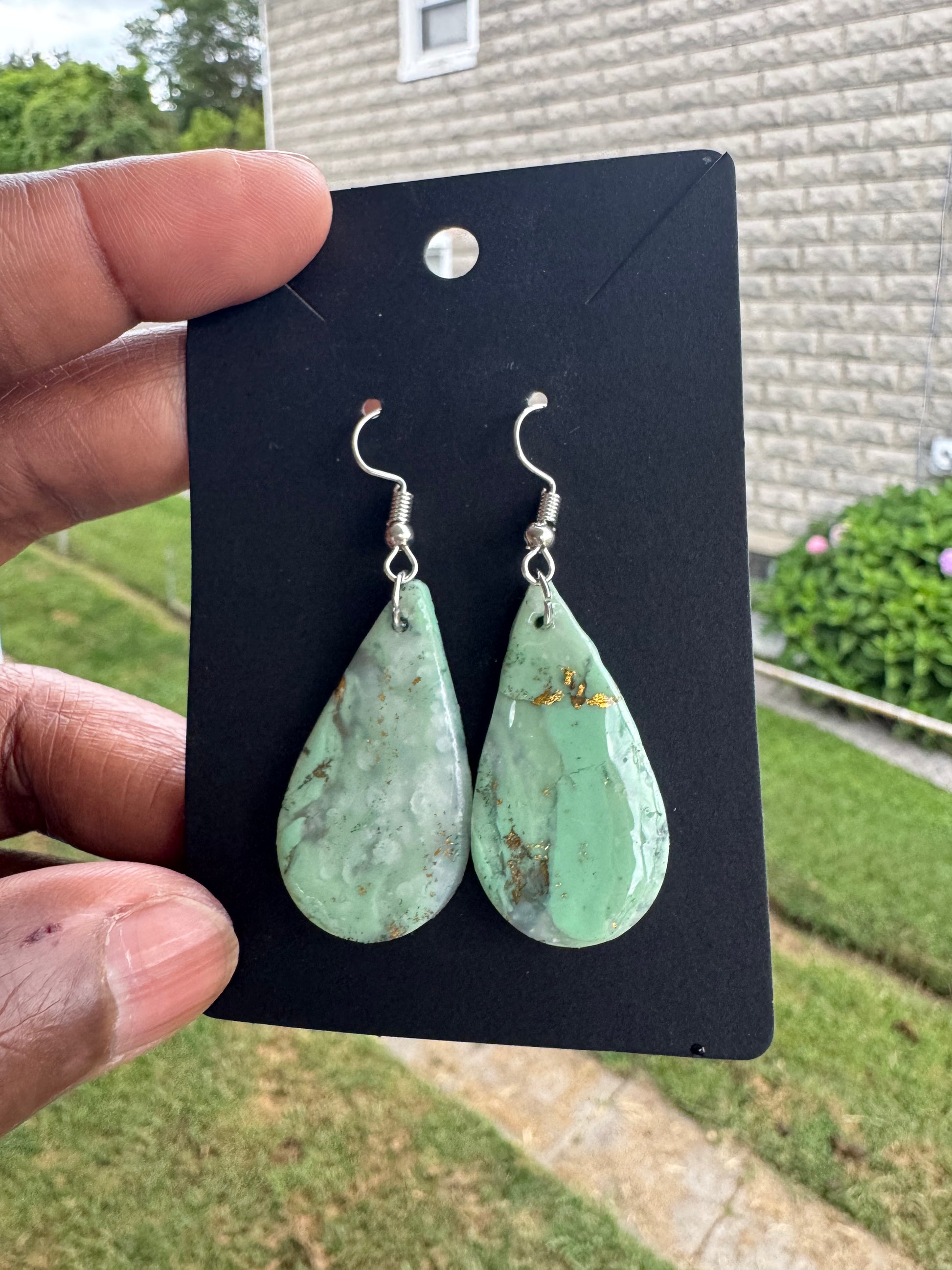 Expertly crafted from the highest quality polymer clay, these Sage & Moonlight earrings feature a stunning combination of soft sage and gold colors in a delicate teardrop shape. Hypoallergenic for worry-free wear, these earrings are perfect for elevating any outfit with a touch of sophisticated elegance.