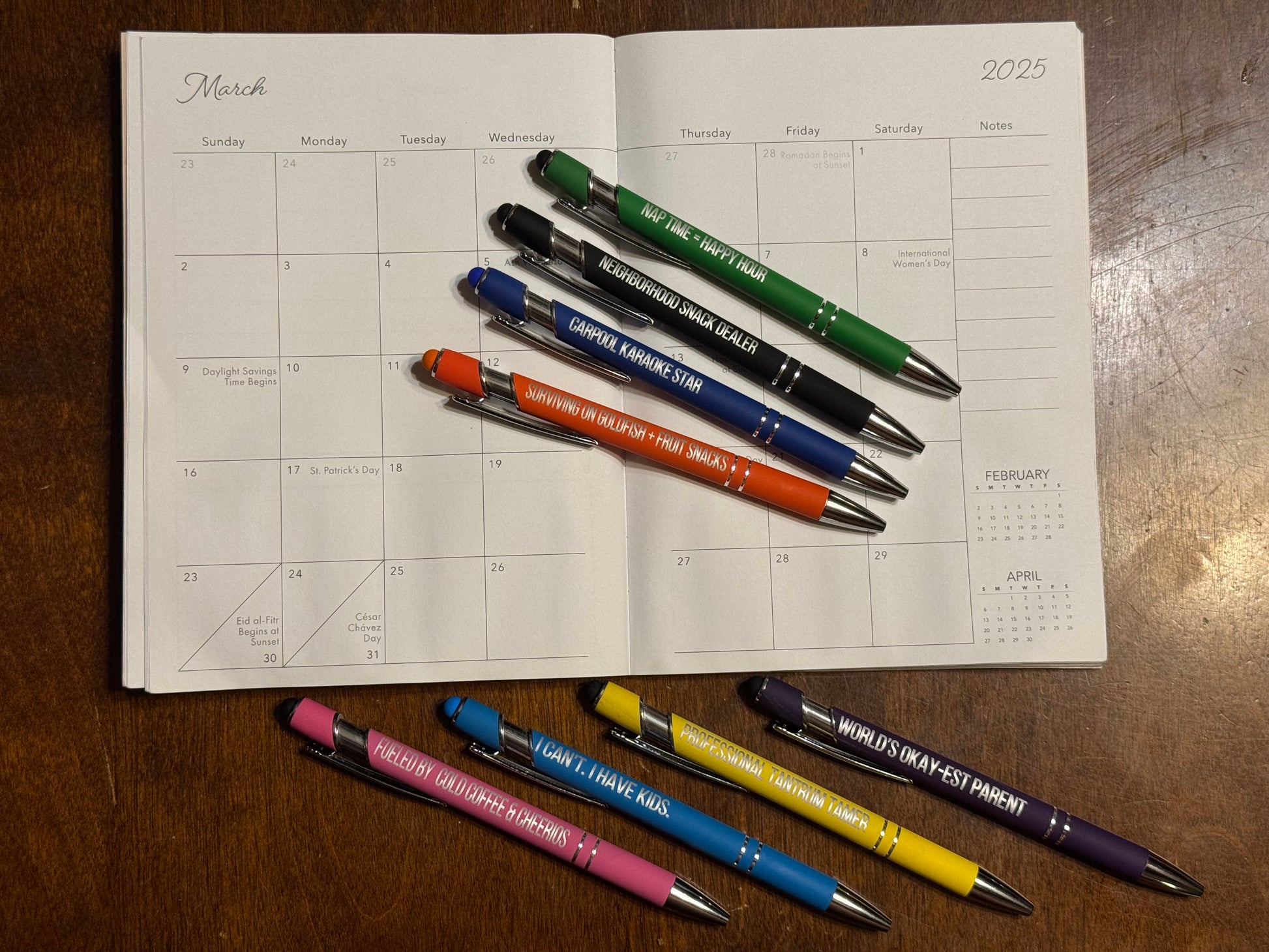 Experience effortless writing and navigation with our set of 8 stylus pens. With a comfortable grip and smooth, fast-drying black ink, these pens are perfect for any task. Each pen is engraved with funny and snarky sayings, bringing a bit of humor to your daily routine.