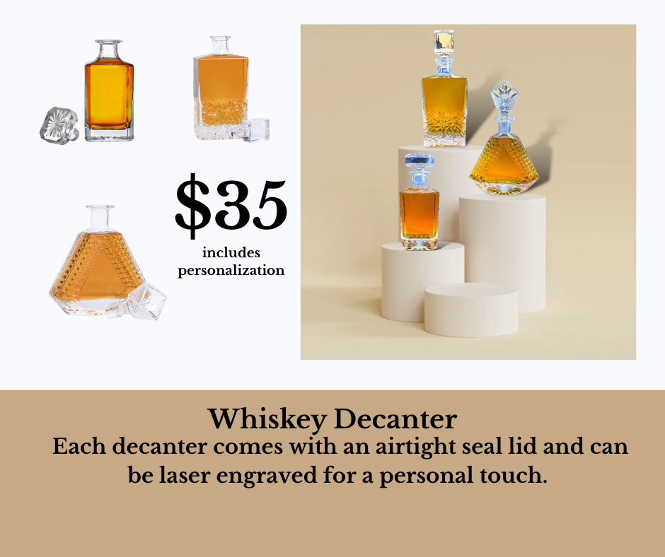 Elevate your whiskey experience with our sophisticated Whiskey Decanter. This elegant vessel doesn't just store your premium spirits—it showcases them. The crystal-clear design highlights your whiskey's rich amber hues while allowing proper aeration to enhance flavors and aromas. Perfect for connoisseurs who appreciate the finer things or as an impressive gift that commands attention in any home bar collection.